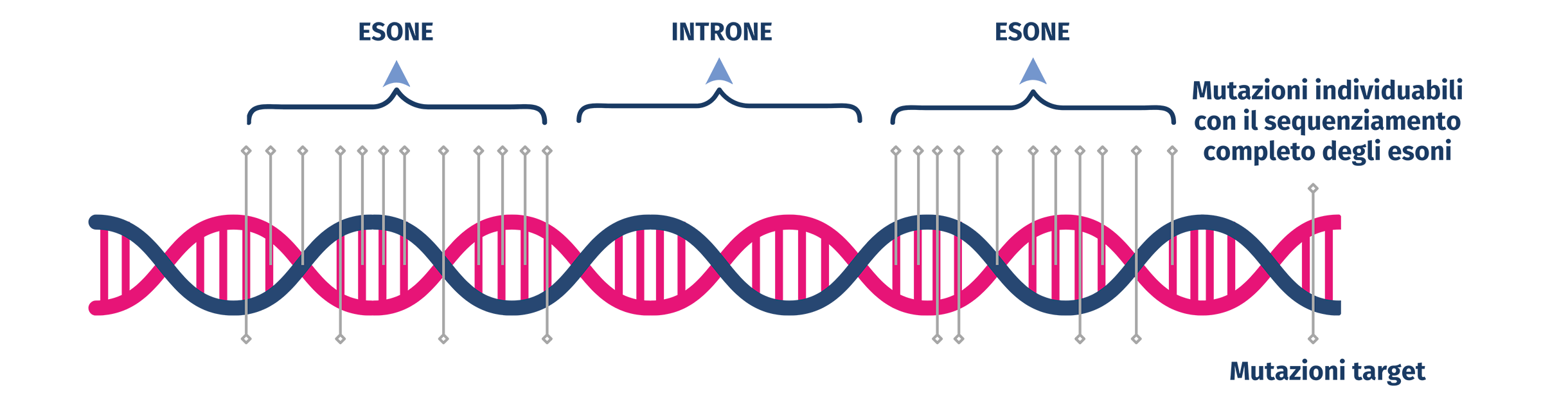 Vantaggio rispetto ai panel target: nessun set di mutazioni predefinito; identificazione di qualsiasi variante nelle regioni sequenziate.